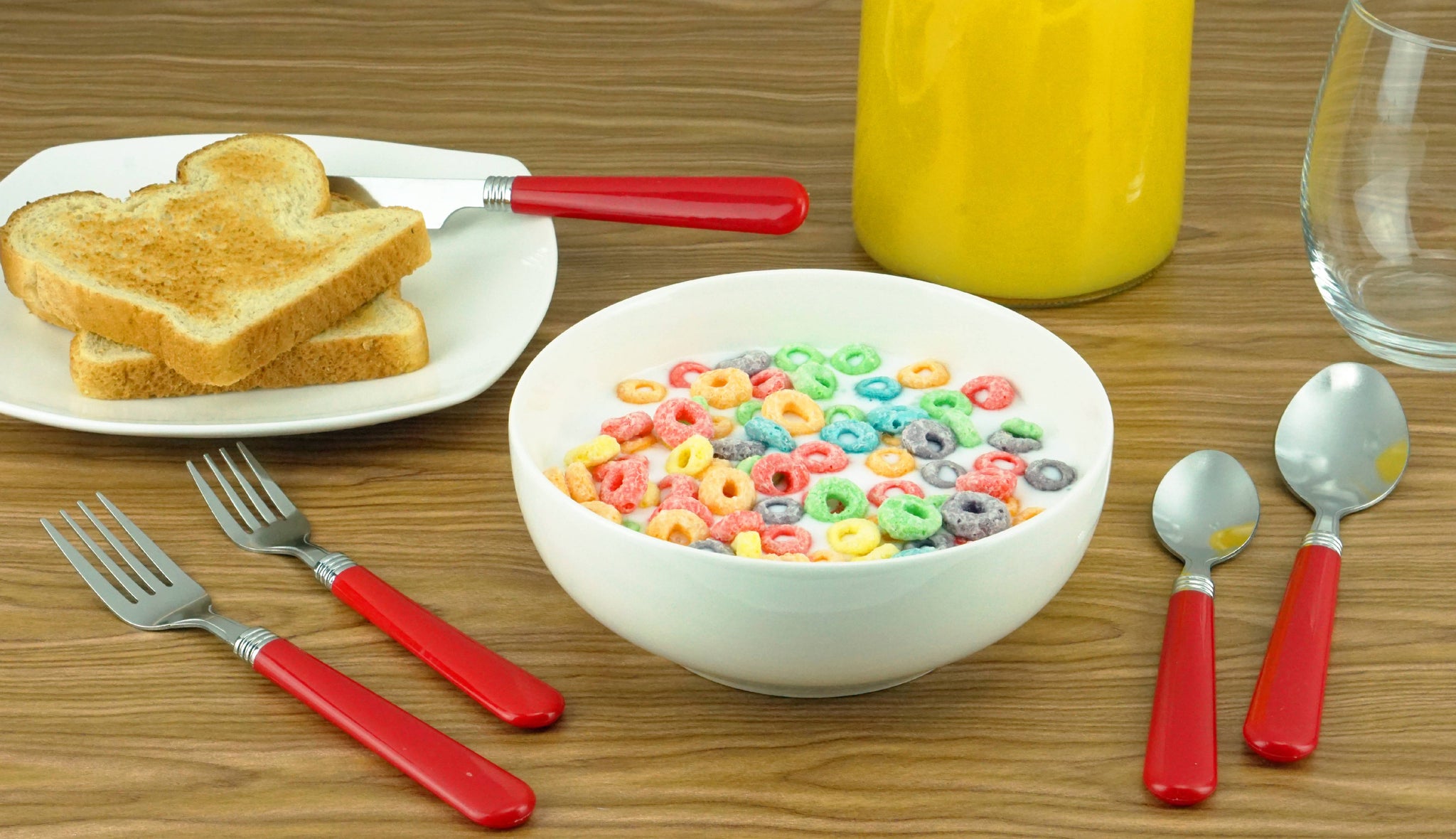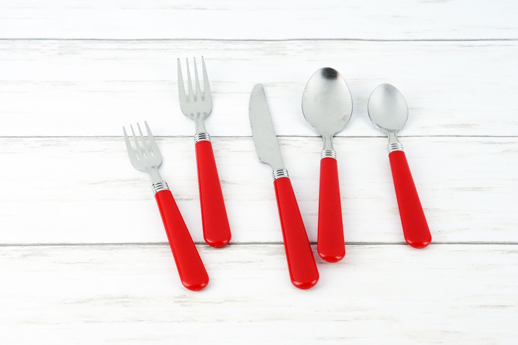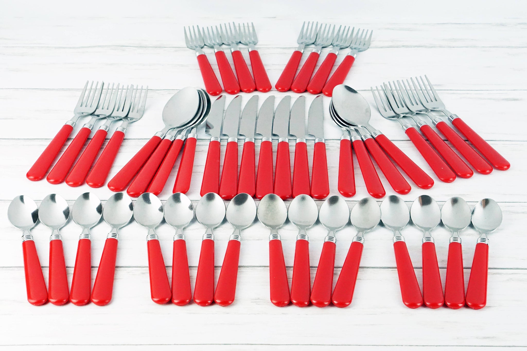 Red Flatware Set, 48 Piece Stainless Steel & Plastic